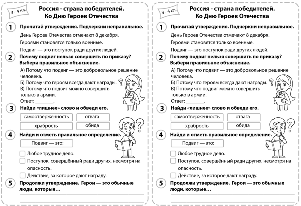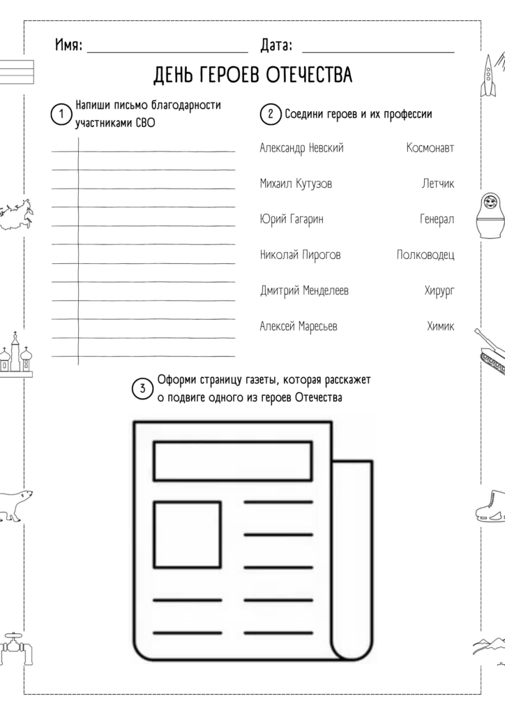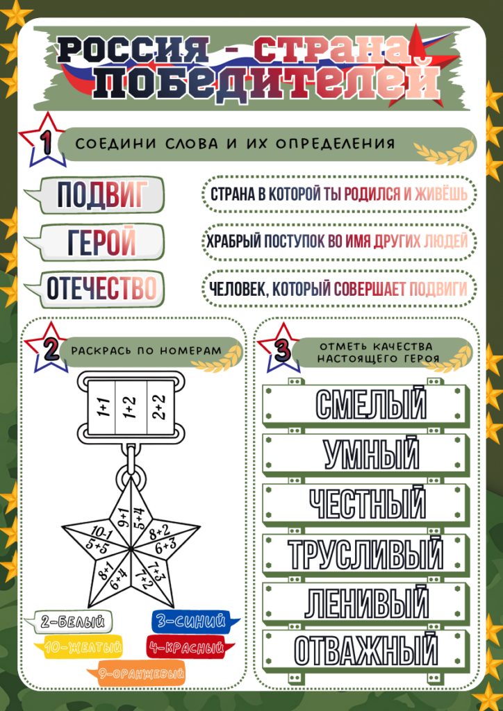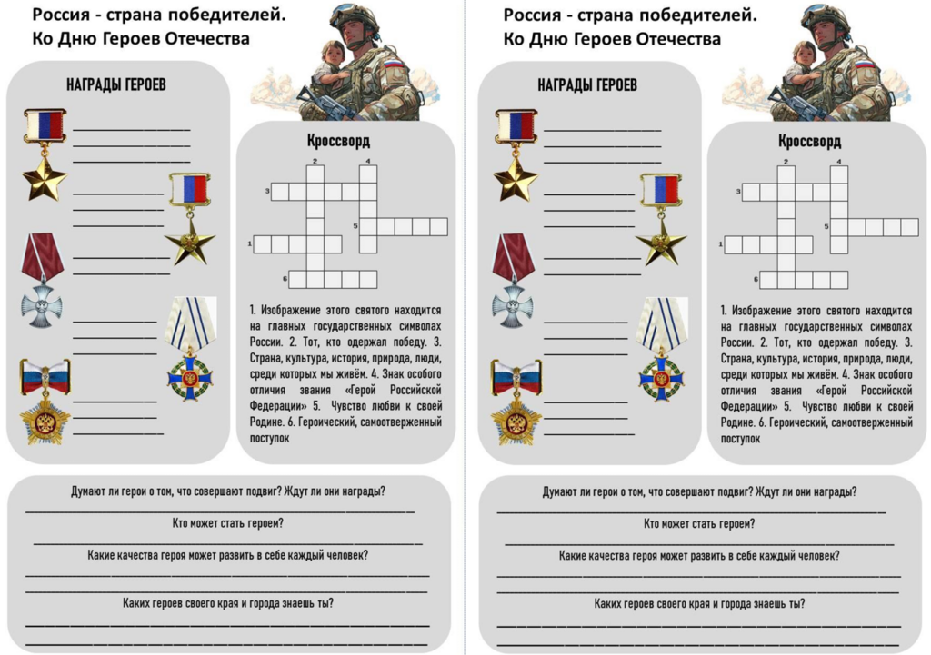 Рабочий лист Россия — страна победителей ко Дню Героев Отечества