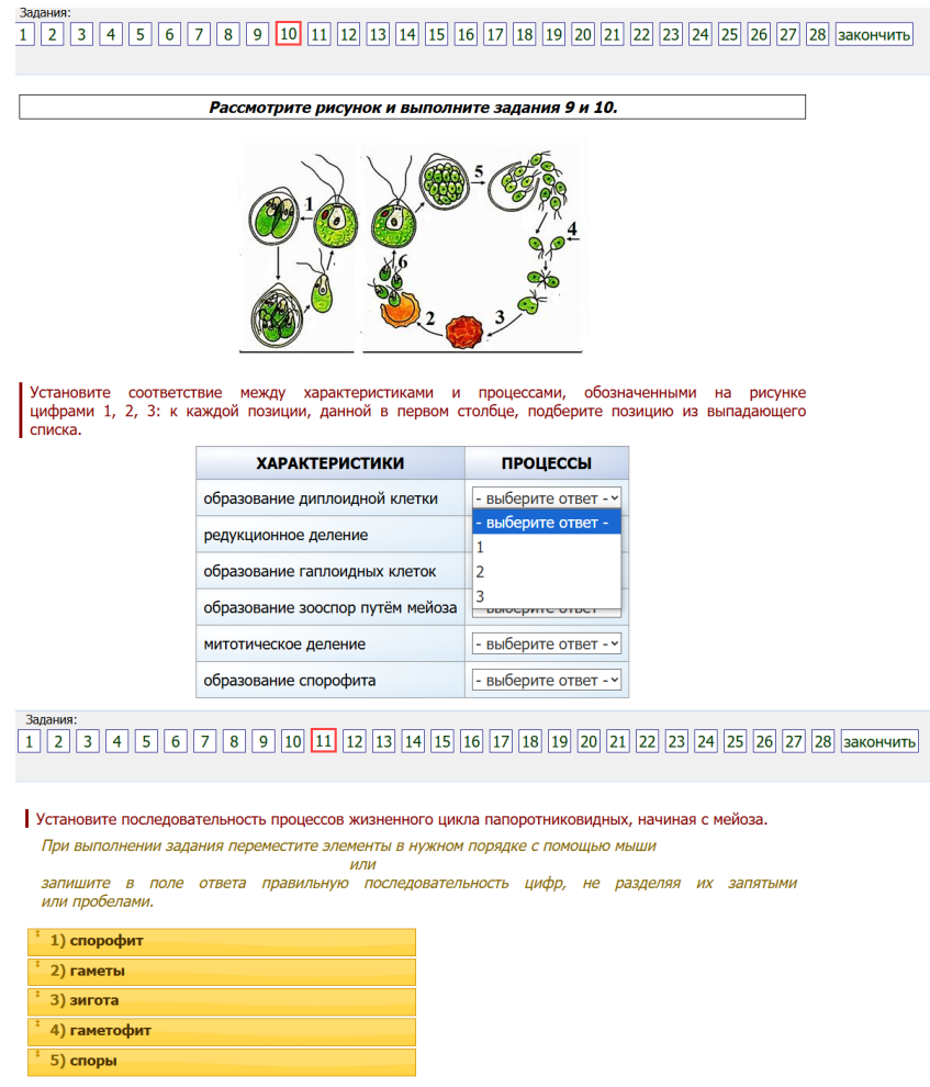 11. Установите последовательность процессов жизненного цикла папоротниковидных, начиная с мейоза. При выполнении задания переместите элементы в нужном порядке с помощью мыши или запишите в поле ответа правильную последовательность цифр, не разделяя их запятЫМИ или пробелами.