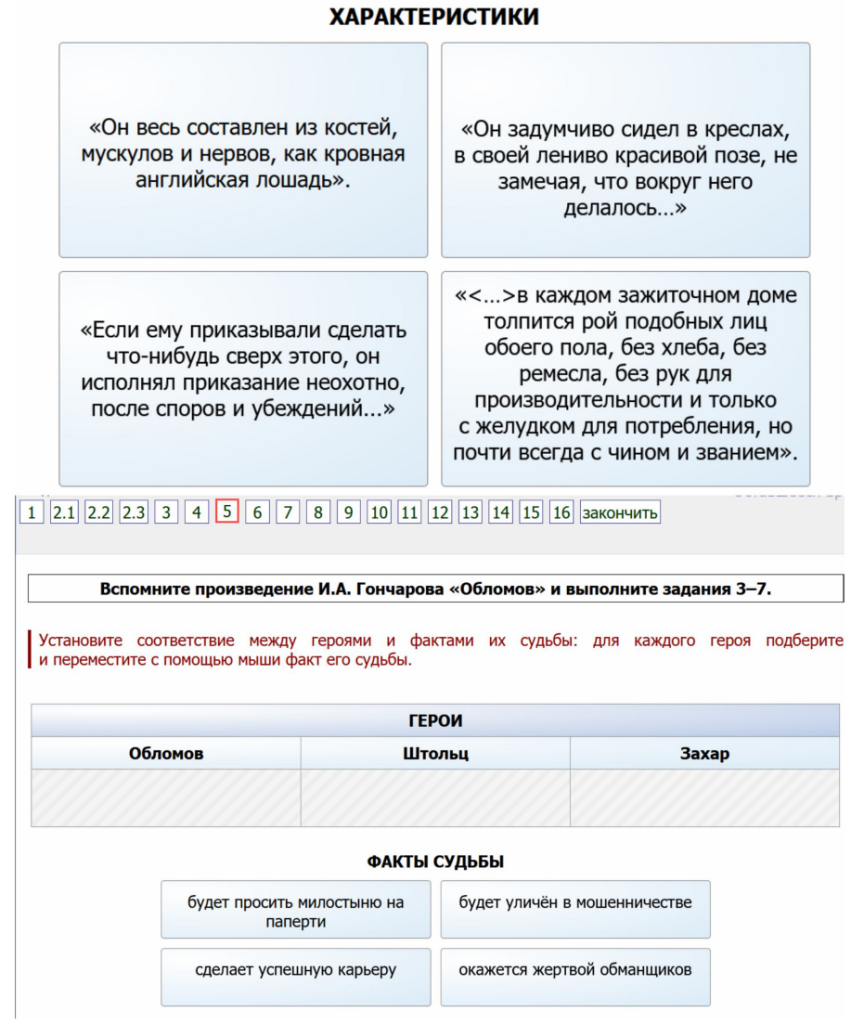 Установите соответствие между героями и их характеристиками: для каждого героя подберите и переместите с помощью мыши его характеристику. Установите соответствие между героями и фактами их судьбы: для каждого героя подберите и переместите с помощью мыши факт его судьбы.