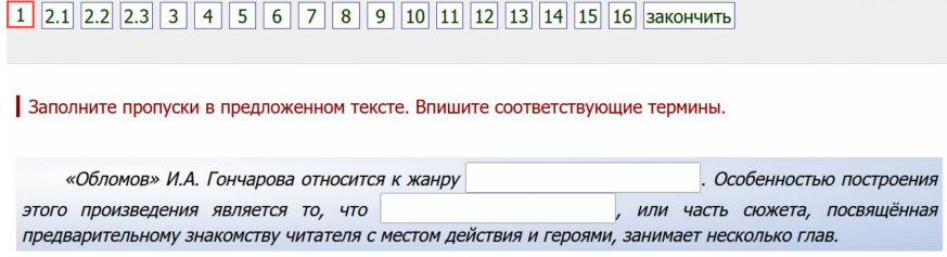 Заполните пропуски в предложенном тексте. Впишите соответствующие термины. «Обломов» И.А. Гончарова относится к жанру Особенностью построения этого произведения является то, что или часть сюжета, посвящённая предварительному знакомству читателя с местом действия и героями, занимает несколько глав.