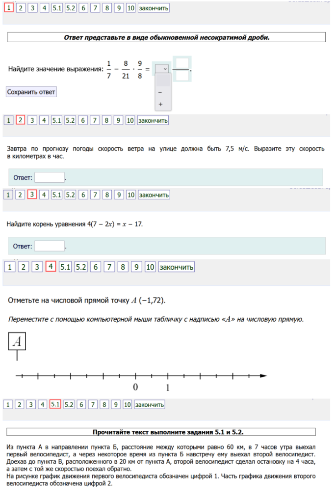 4. Отметьте на числовой прямой точку А (–1,72). Переместите с помощью компьютерной мыши табличку с надписью «А» на числовую прямую. Прочитайте текст, выполните задания 5.1 и 5.2.