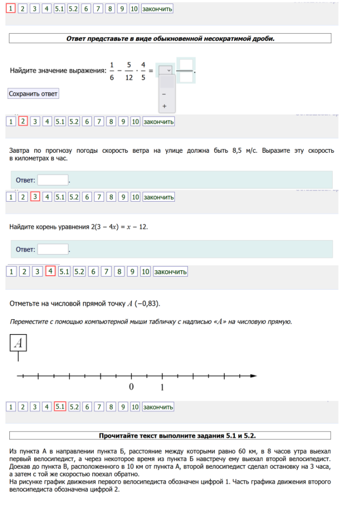 4. Отметьте на числовой прямой точку А (–0,83). Переместите с помощью компьютерной мыши табличку с надписью «А» на числовую прямую. Прочитайте текст, выполните задания 5.1 и 5.2.