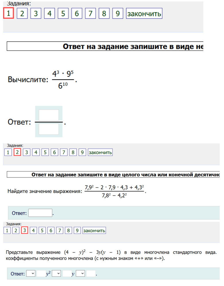 1. Представьте выражение (2 – y)² – 5y(y – 3) в виде многочлена стандартного вида. Запишите коэффициенты полученного многочлена (с нужным знаком «+» или «–»).