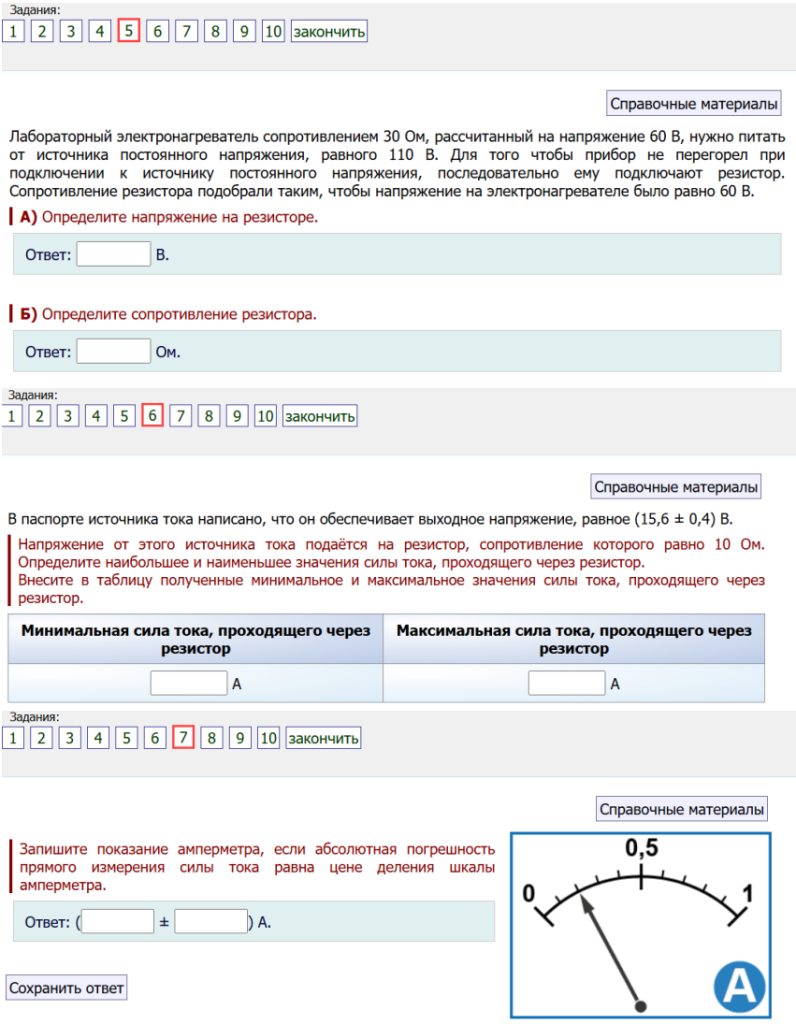 7. Запишите показание амперметра, если абсолютная погрешность прямого измерения силы тока равна цене деления шкалы амперметра.