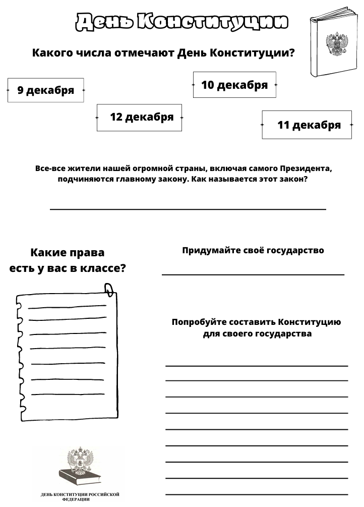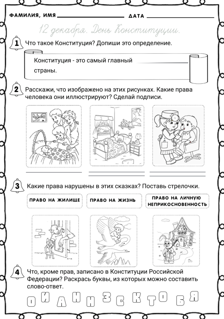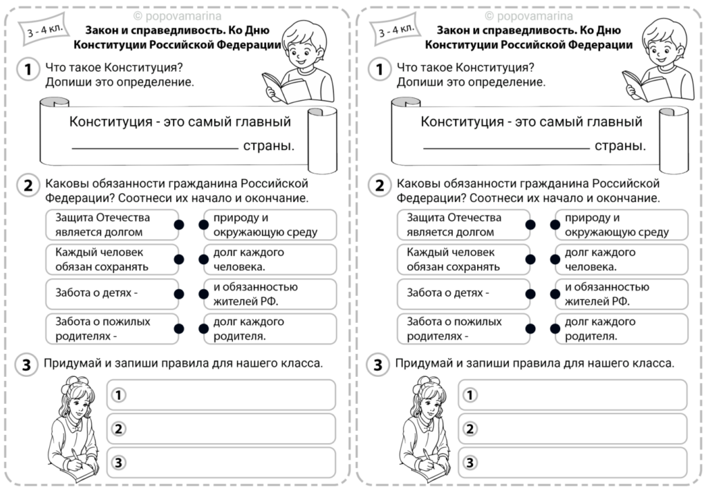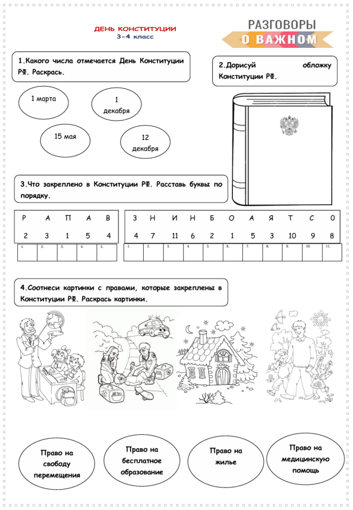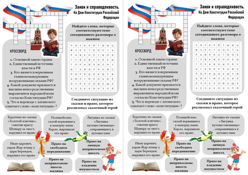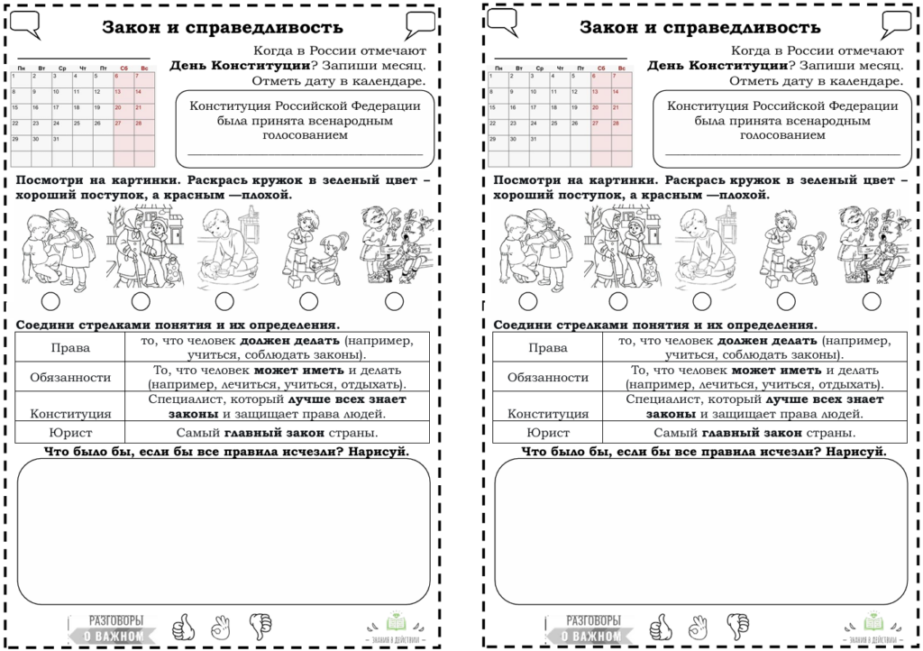 Рабочий лист закон и справедливость ко Дню Конституции Российской Федерации