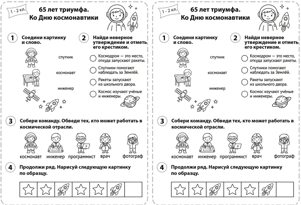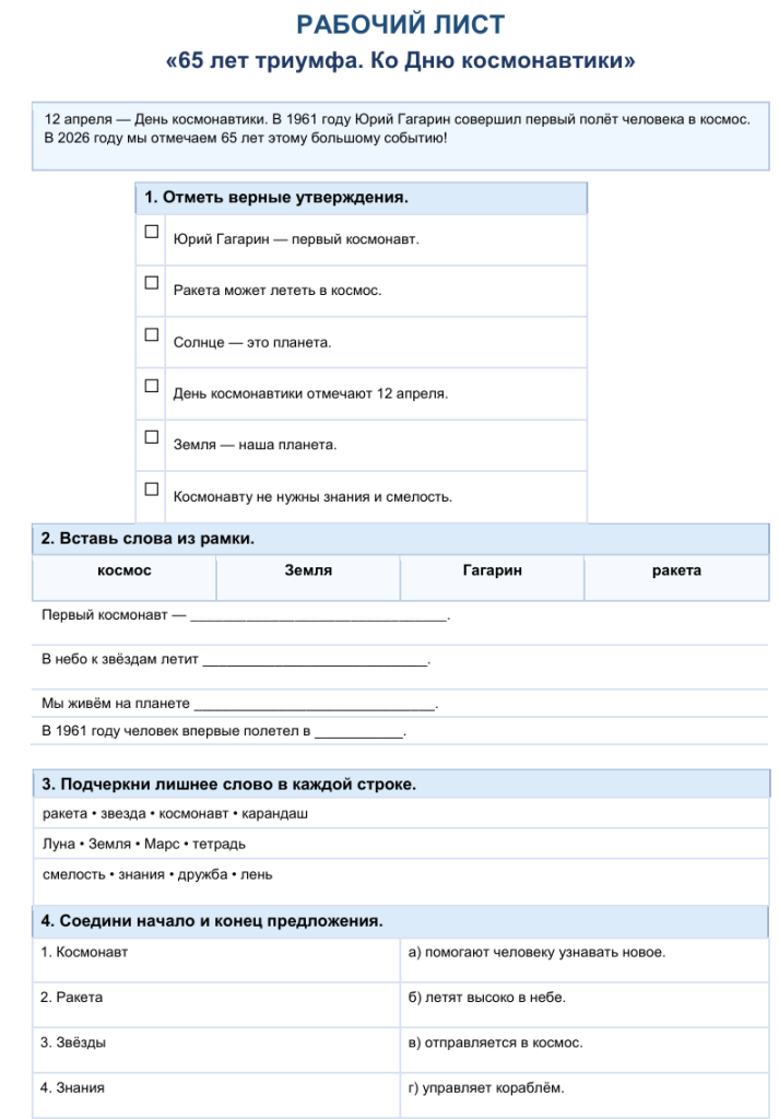 Рабочий лист 65 лет триумфа ко Дню космонавтики