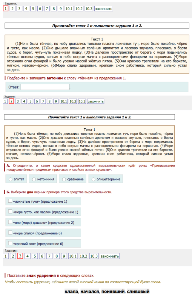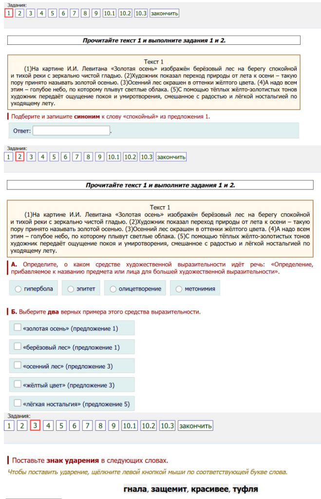 3. Поставьте знак ударения в следующих словах. Чтобы поставить ударение, щёлкните левой кнопкой мыши по соответствующей букве слова. клала, начался, понявший, сливовый.