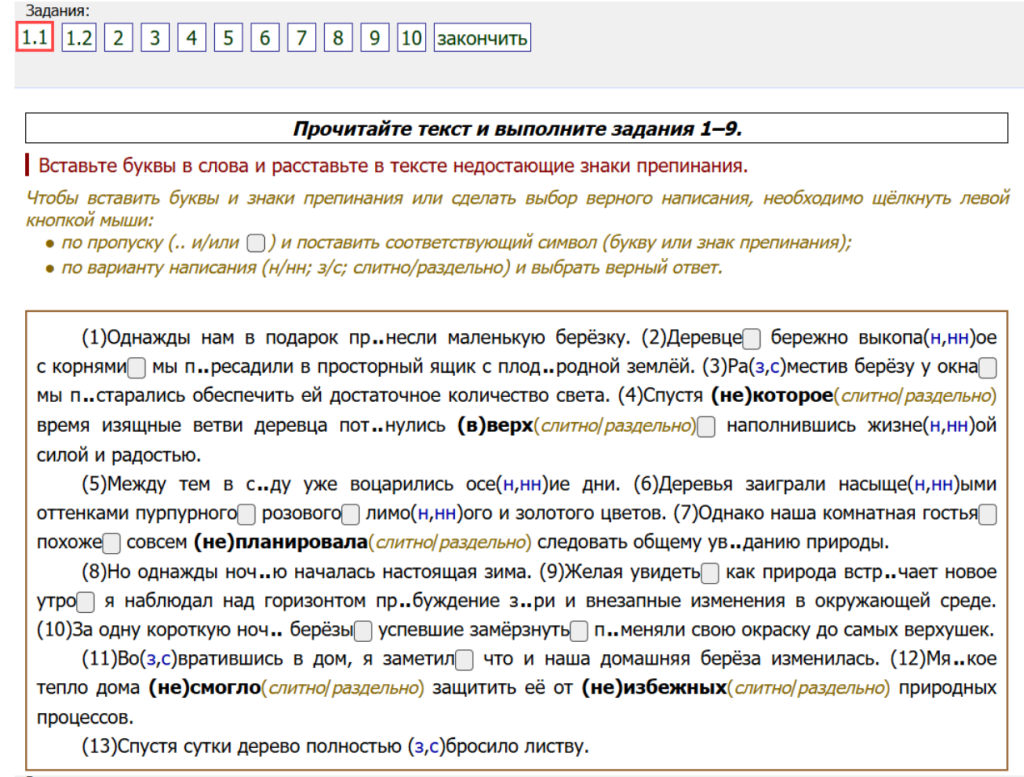 (7) Однако наша комнатная гостья () похоже() совсем (не) планировала следовать общему ув.. данию природы. (8)Но однажды ноч..ю началась настоящая зима. (9) Желая увидеть() как природа встр..чает новое утро() я наблюдал над горизонтом пр..буждение з..ри и внезапные изменения в окружающей природе. (10) За одну короткую ноч.. берёзы () успевшие замёрзнуть () п.. меняли свою окраску до самых верхушек. (11) Во (3,с) вратившись в дом, я заметил () что и наша домашняя берёза изменилась. (12) Мя..кое тепло дома (не) смогло защитить её от (не) избежных природных процессов. (13) Спустя сутки дерево полностью (3,с) бросило листву.